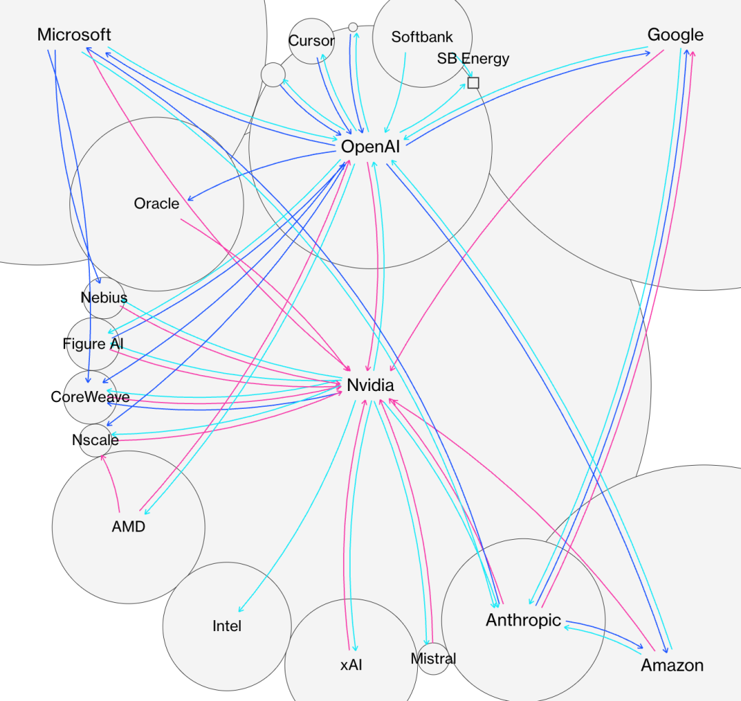 英伟达把芯片卖给云服务商,云服务商再把算力租给AI初创公司,而初创公司的融资往往又来自这些巨头。