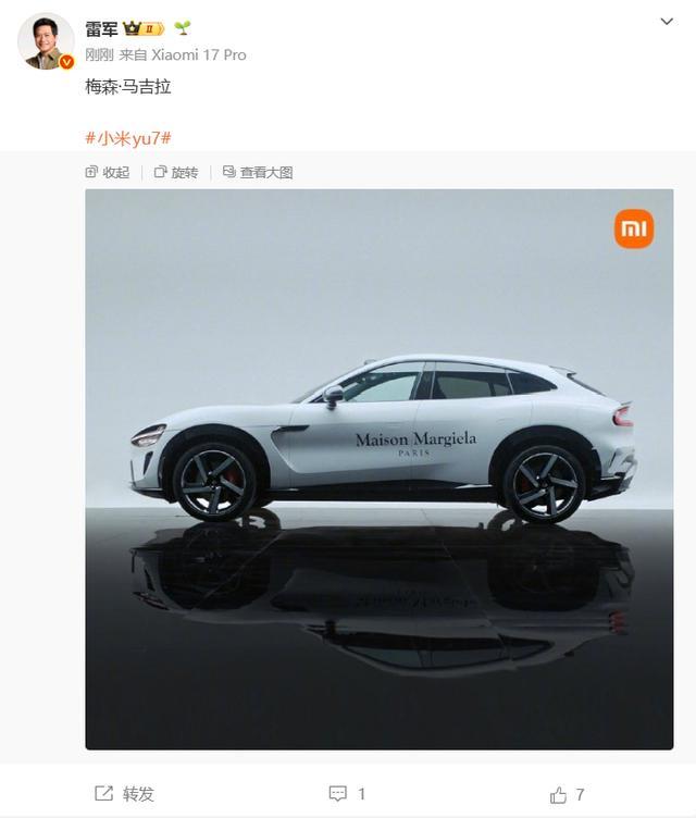 4月6日消息,刚刚,小米创始人,董事长兼CEO雷军在社交平台提及梅森・马吉拉并附带 #小米 yu7# 话题,疑似即将展开联动。