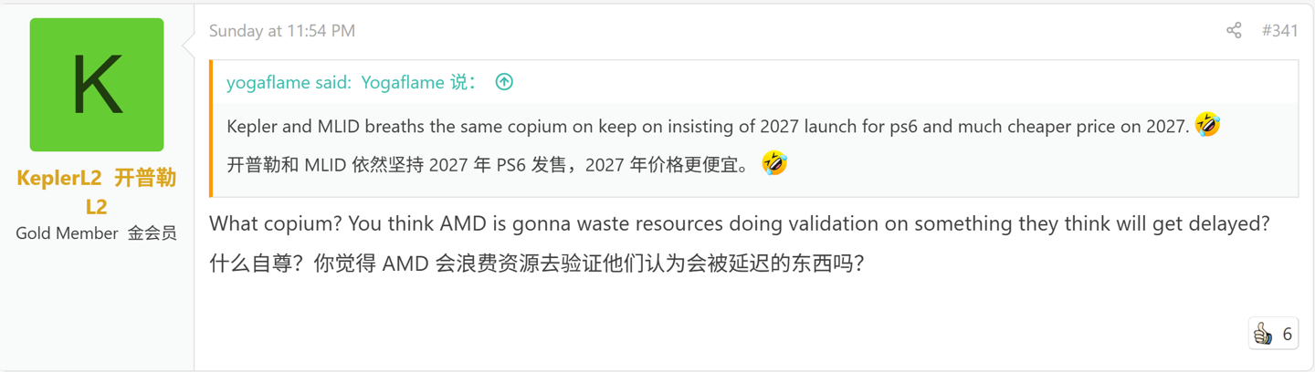 消息源反驳“PS6 主机可能延期至 2028 年底甚至更晚”的推测,指出 AMD 公司已开始为 PS6 主机和掌机,推进代号为 Canis 和 Orion 的定制 APU 验证工作,并强调如果公司认为项目面临延期风险,绝不会浪费宝贵的工程资源。