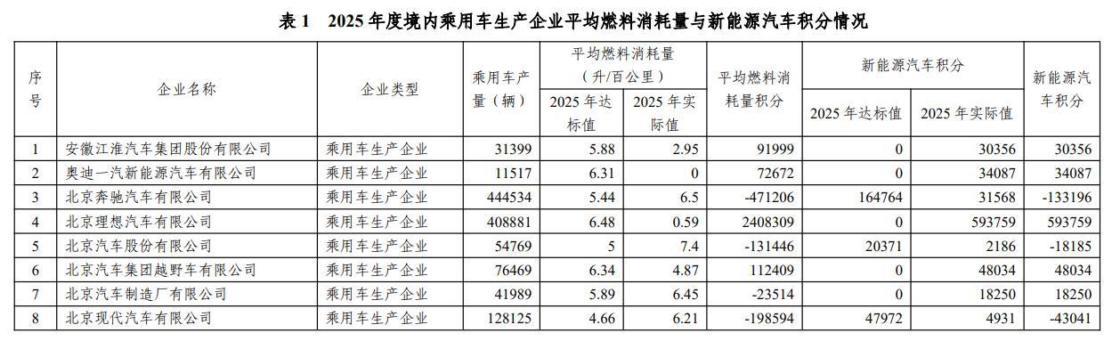 IT之家 4 月 9 日消息,工信部 4 月 7 日发布 2025 年度乘用车企业平均燃料消耗量与新能源汽车积分情况。