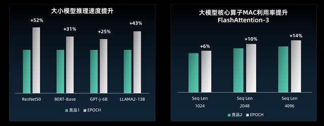 奕行智能的芯片产品已经面向国产主流大模型进行了深度适配优化,实测性能可以达到国内领先、对标国际一流的水准。在实测中,相比国际竞品,奕行智能芯片在模型推理速度显著提升:RestNet50提升52%,BERT-Base提升31%,GPT-J-6B提升25%,LLAMA2-13B提升43%,提升幅度明显。