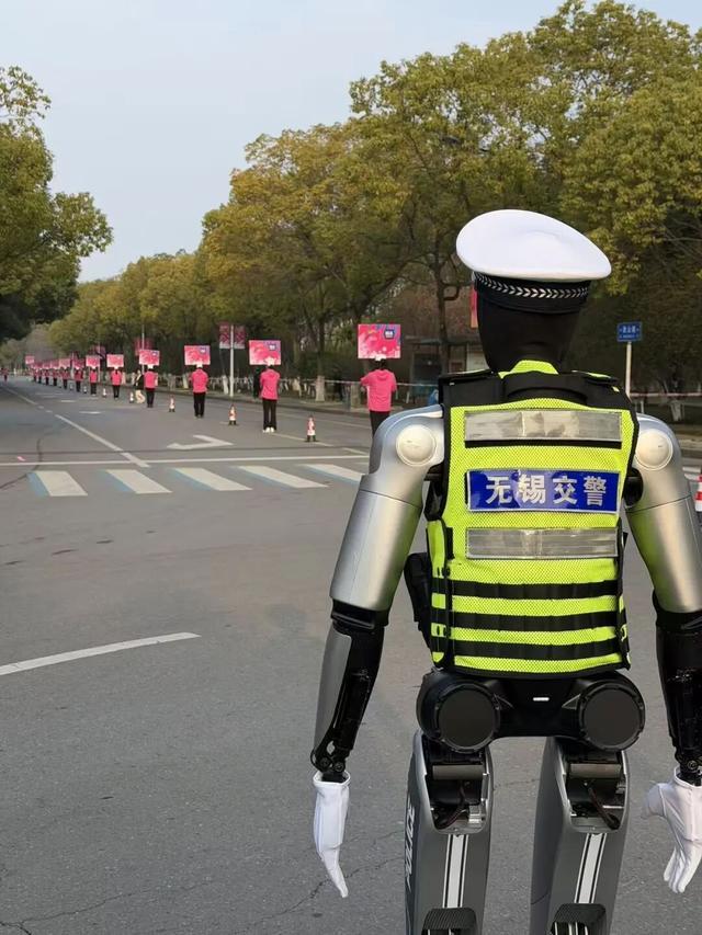 在不久前举办的 2026 无锡马拉松赛事中,魔法原子交管人形机器人“小麦”就已经上岗,成为全球首个在大型赛事中持证上岗执行交通疏导任务的“机器警察”。