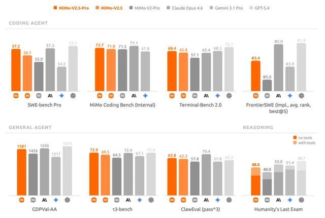 小米官方称,MiMo-V2.5-Pro是小米MiMo迄今最强大模型,在通用智能体能力、复杂软件工程以及长程任务等维度上,能与Claude Opus 4.6、GPT-5.4等全球顶尖Agent模型相当,相较其上一代模型MiMo-V2-Pro提升。