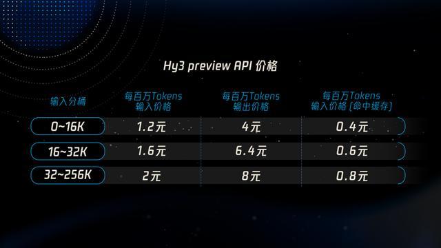 在更长上下文(最高256K)场景下,Hy3 preview输入价格逐步提升至2元/百万tokens,输出价格为8元。