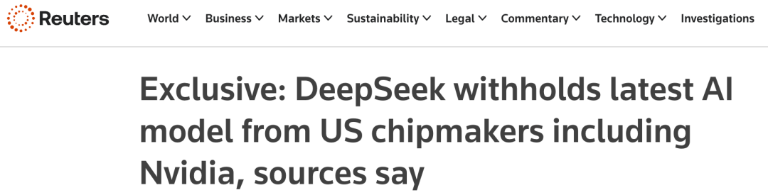 媒体(路透社)报道,DeepSeek V4并没有把旗舰模型提供给英伟达这样的美国芯片厂商做性能优化,打破了在重大模型更新之前进行性能优化的行业惯例。提前访问权限只提供给了华为这样的中国芯片厂商。中国的AI芯片肯定不如英伟达成熟,硬件方面的适配需要更长的时间。这也许是延迟发布的一个原因。