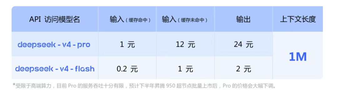 Deepseek 在报价表中还补充了一点,预计下半年昇腾950节点批量上市后,PRO的价格会大幅下调。