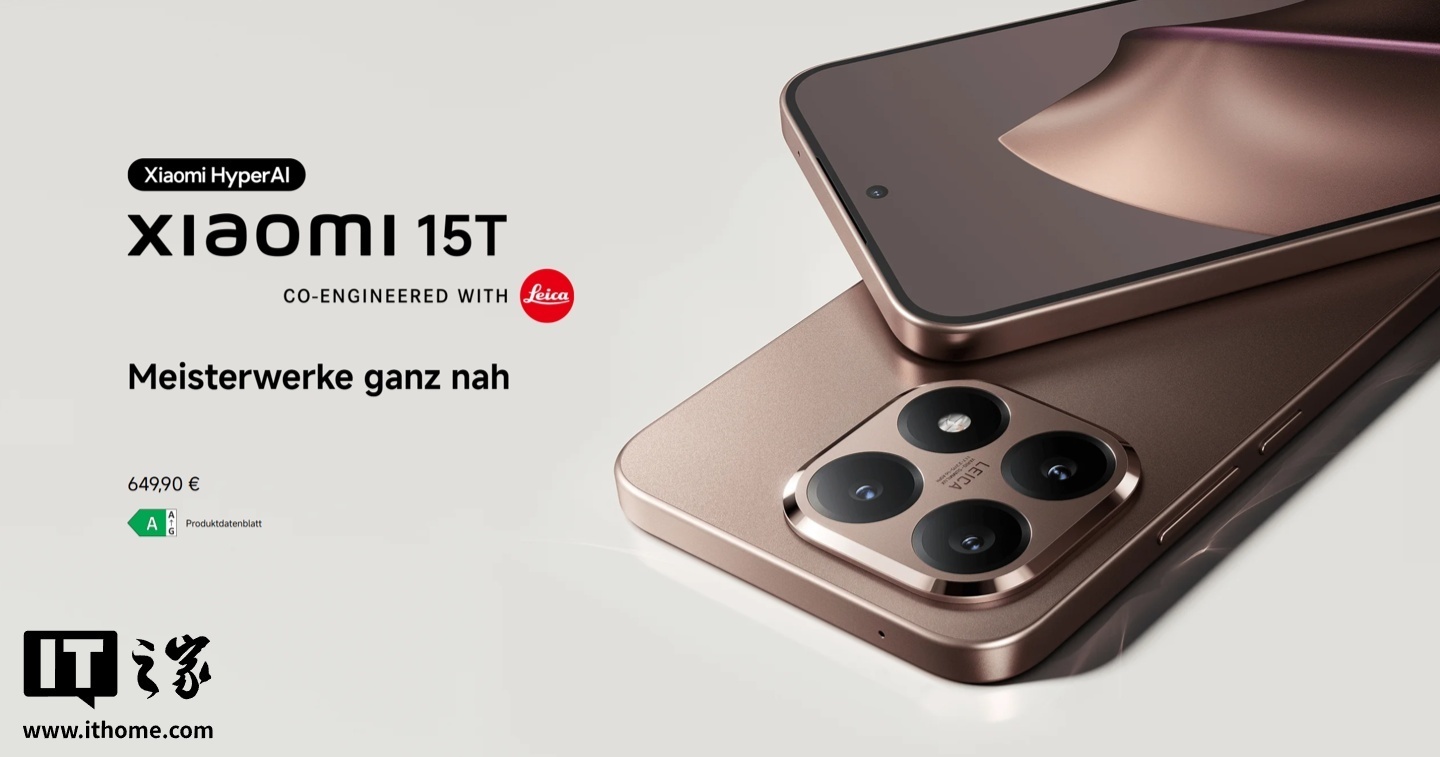 据IT之家此前报道,小米 15T 系列手机发布于去年 9 月,分别配备 6.83 英寸 1.5K 120Hz、6.83 英寸 1.5K 144Hz 挖孔 AMOLED 屏幕,主打天玑旗舰处理器、徕卡影像系统等,延续了 14T 系列的经典外观,售价 649 欧元(IT之家注:现汇率约合 5162 元人民币)起。
