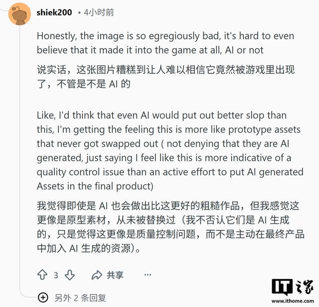 IT之家 3 月 21 日消息,科技媒体 Wccftech 昨日(3 月 20 日)发布博文,《红色沙漠》首日销量突破 200 万份背景下,有玩家指出该游戏在使用 AI 生成美术素材方面不够透明。