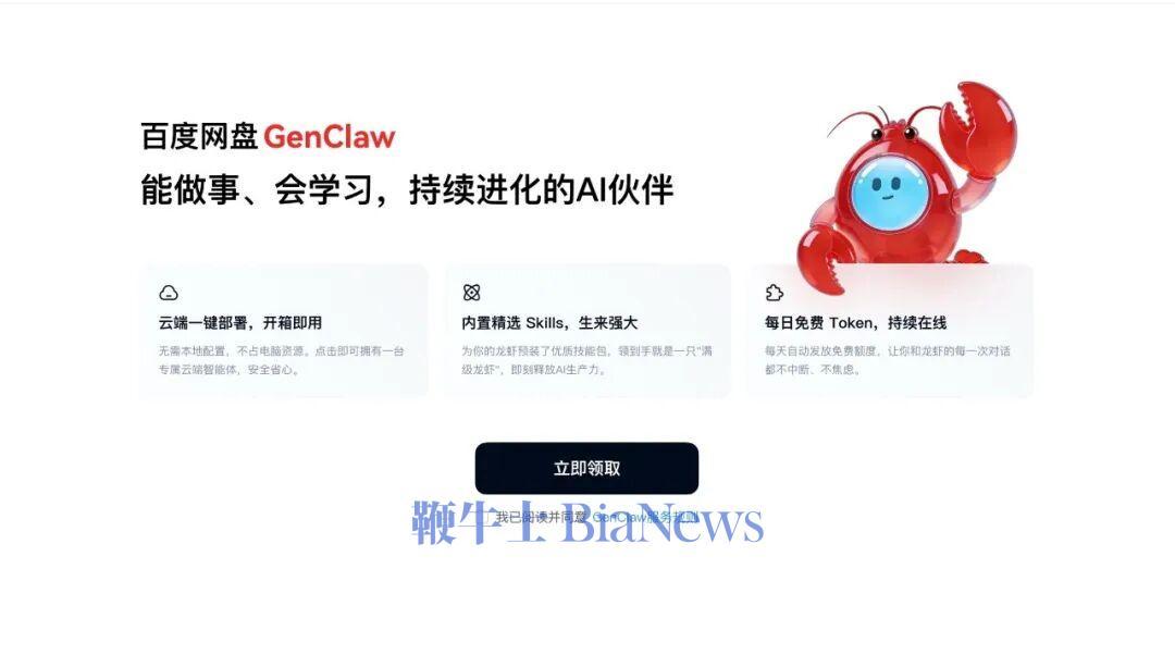 3月21日,百度网盘宣布全新升级GenFlow,并兼容OpenClaw能力,该功能已上线PC客户端及全新推出的「团队空间」,个人用户、团队可以在百度网盘一键部署OpenClaw、开箱即用。