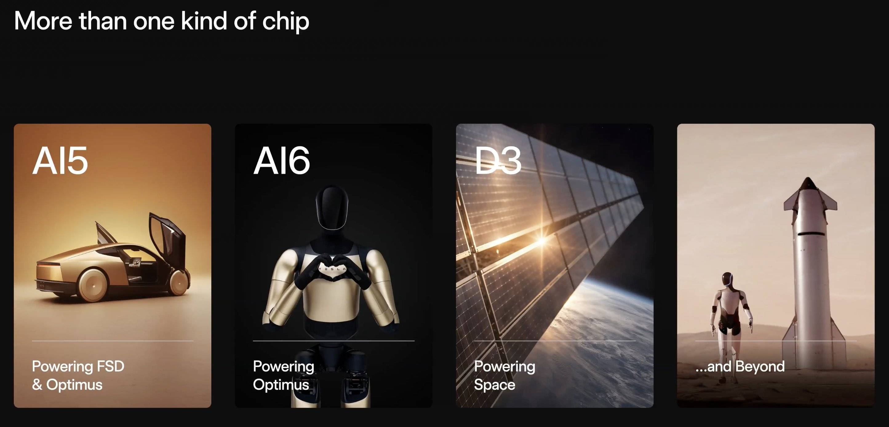 其中一类芯片面向地面应用,主要服务于 Cybercab 自动驾驶出租车和 Optimus 人形机器人。
