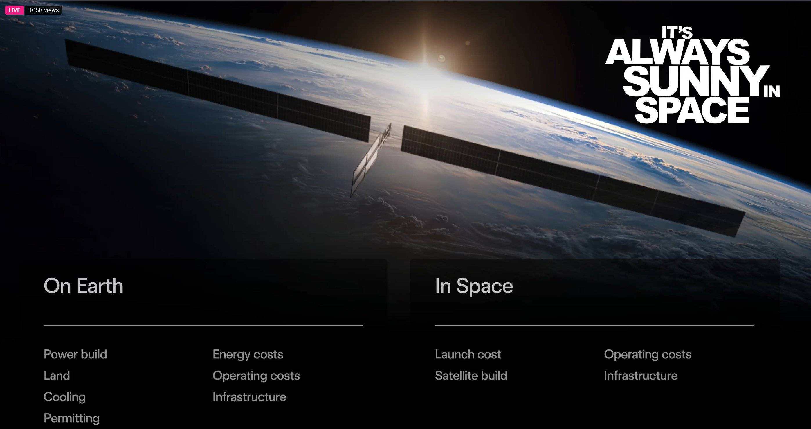 他认为,未来的关键在于太阳能驱动的 AI 卫星,而要大规模利用太阳的能量,就必须进入深空。