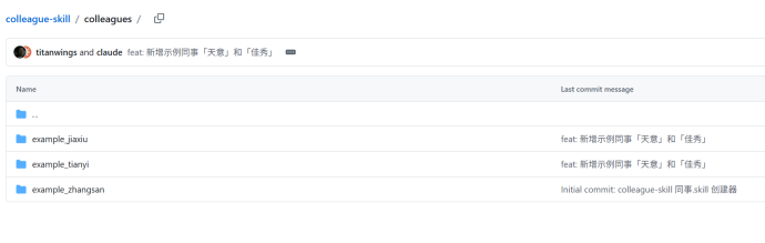 在colleagues文件夹下,每个“数字同事”就是一个子目录,里面有几个Markdown文件:Skill.md是主入口,work.md描述工作,persona.md描述性格,再加一个meta.json存放元数据。仅此而已。