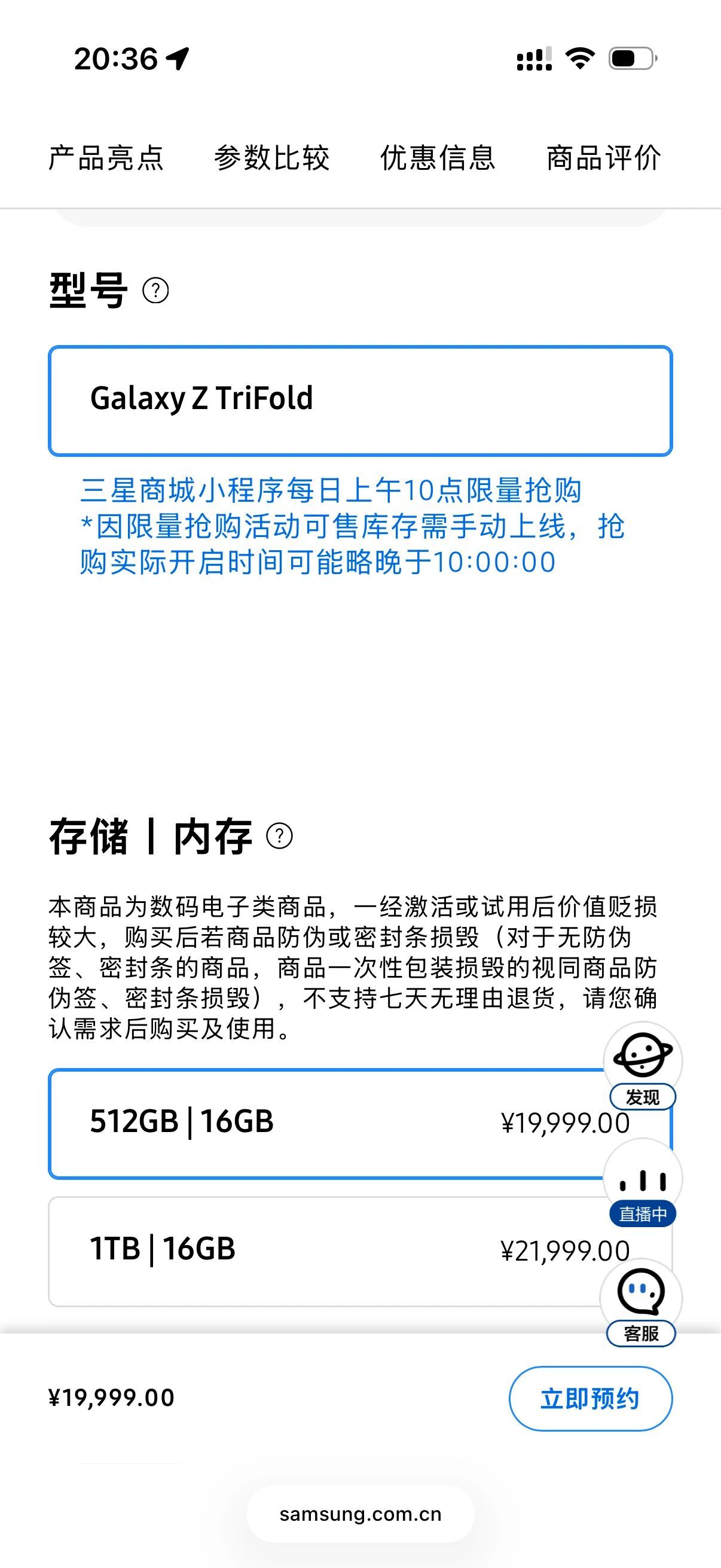 据彭博社报道,售价 2899 美元、展开后变成 10 英寸平板的三折屏手机三星 Galaxy Z TriFold 已经停产,目前韩国官网已经显示无法购买,而三星中国官网则显示需要预约抢购。